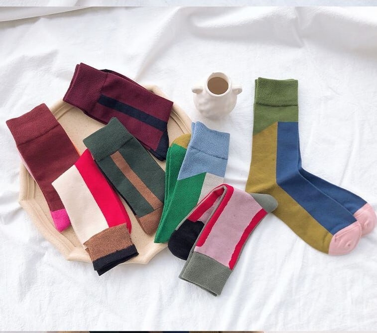 レトロポップ感のある絶妙な色の組み合わせとデザインが大人可愛い靴下です。