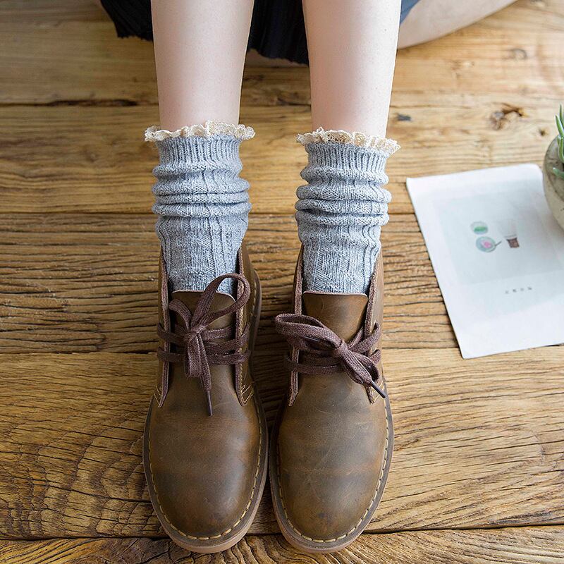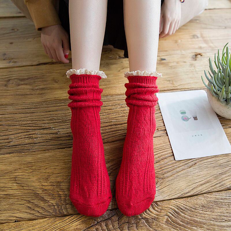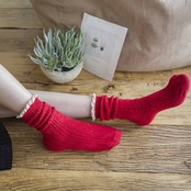 厚手で暖かく、履き口にはレースが施してあり、足元を華やかに演出してくれます。
