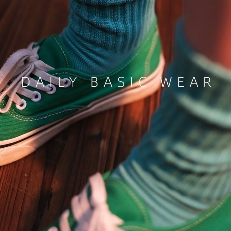 こなれた印象のラフさが魅力で、幅広いアイテムとマッチするカジュアル靴下です。